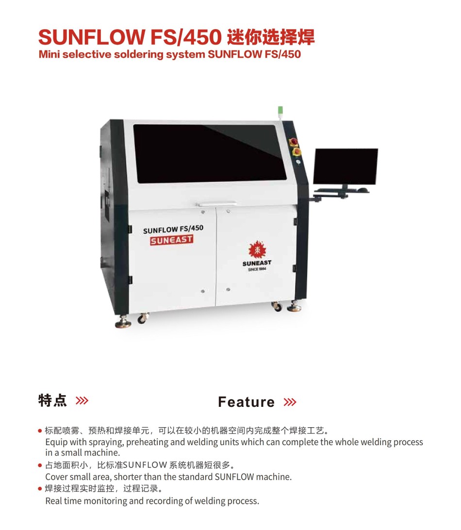 小型選擇性波峰焊SUNFLOW FS/450產品特點: